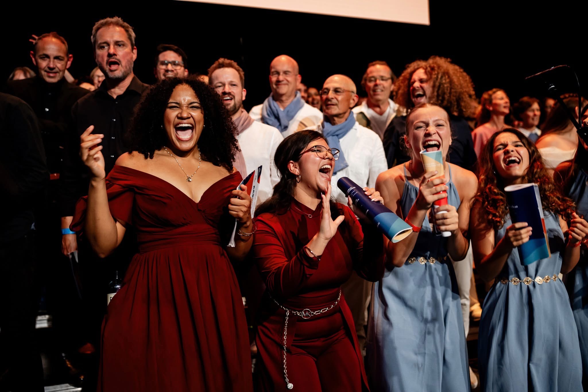 European Choir Games, Aslutning glade deltagere, Arenaen, foto: Interkultur